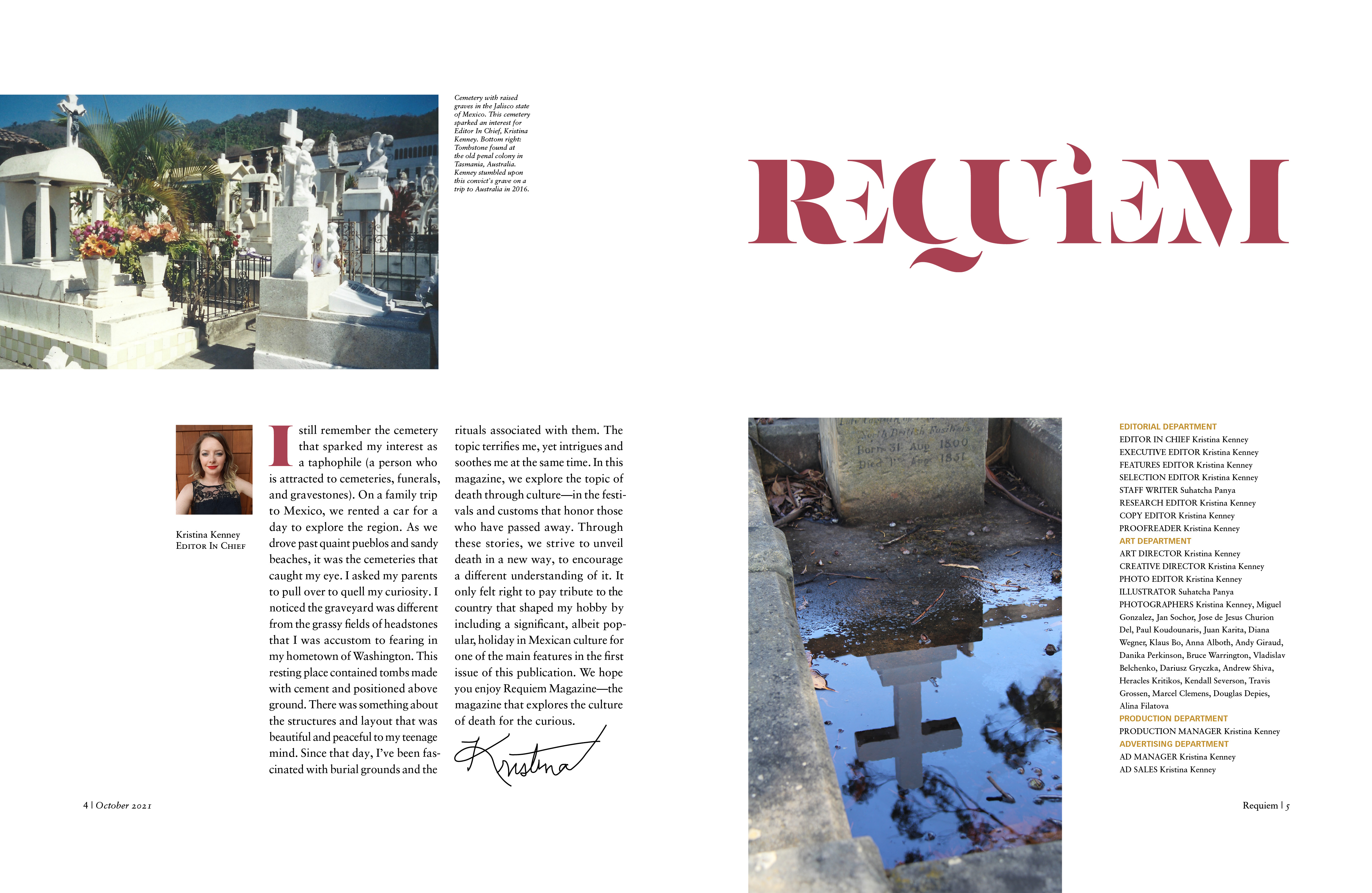 Death can be a taboo subject in American culture. Requiem Magazine strives to encourage a different understanding of it. This quarterly magazine maintains a consistent theme and blueprint across all issues. It showcases articles about festivals honoring the dead, rituals, and burial sites for various cultures around the world. Requiem strives to captivate the culturally curious with vivid photography and educational stories through an unbiased and inclusive lens.